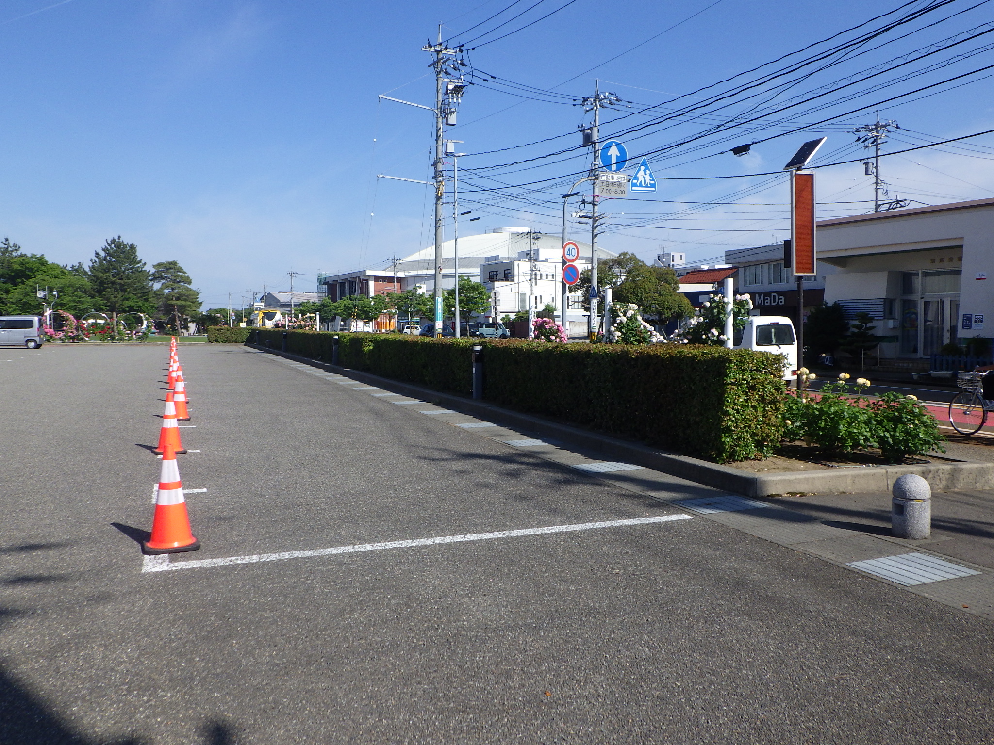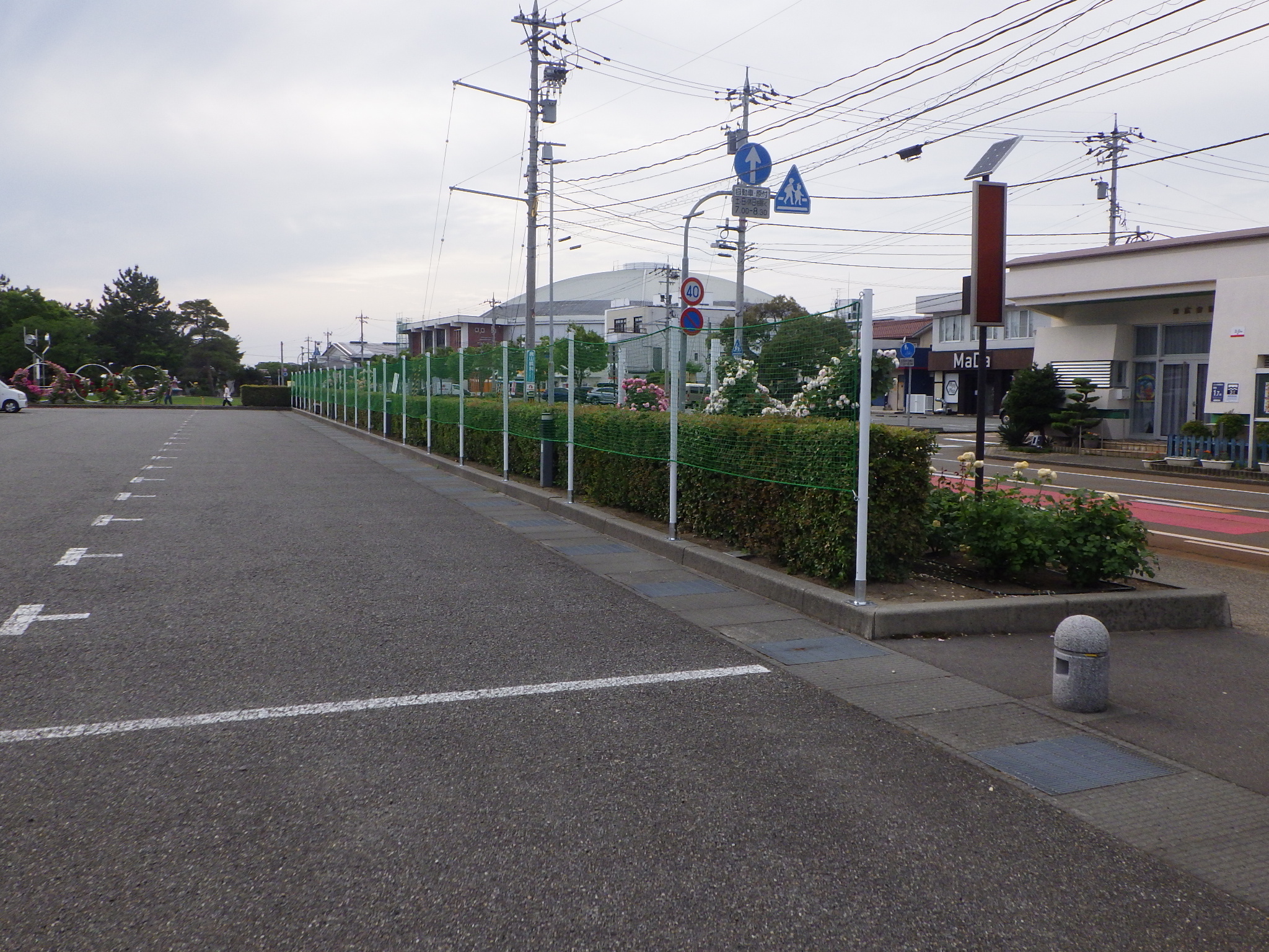 小松市末広野球場の駐車場に、防球ネットを施工しました。